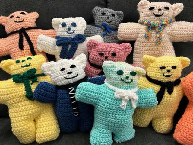 Made with love, clean & donated wool, and the gift of time, these squishy teddy bears are made to give hugs and comfort while the little ones are being treated. Those squishy little teddies are another way our volunteers give back to our community.